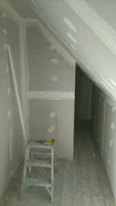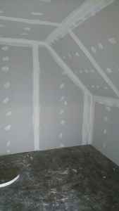 Isolation, placo, pose des boites aux lettres, pose des menuiseries extérieures.